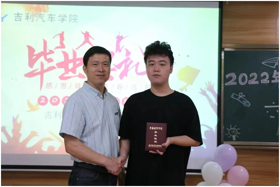 6月17日,2022届毕业典礼吉利分会场活动在2318举行。yl6809永利检测中心经理邵立东、吉利汽车公司党总支副书记张理剑、学工办主任张园园和2022届毕业生代表参加活动。