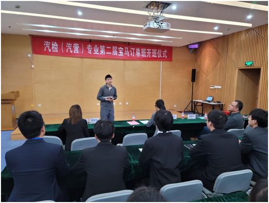 邵立东代表学院对参加开班仪式的企业代表表示热烈的欢迎和诚挚的谢意,并回顾了首届宝马订单班的建设情况。希望本届订单班的员工做好自己的职业生涯发展规划,珍惜订单班平台,努力把自己打造成一名有“匠魂”、“匠情”、“匠心”、“匠技”和“匠创”的卓越人才,实现自己的人生价值,为社会和企业创造财富。