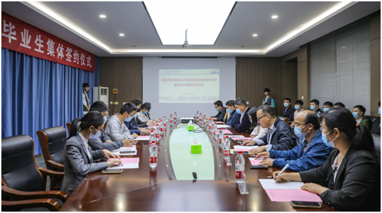 新能源1911班郑佳超作为毕业生代表分享了自己在实习期间的成长和收获,表达了对学校和企业精心培育的感恩之情,并希望毕业生们发挥自己的价值,都能够为母校争光。随后,与会企业领导与各专业毕业生代表进行了现场签约。