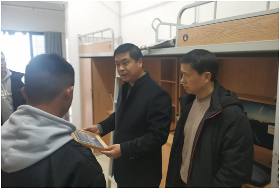在员工公寓,程利群在访客本上登记姓名、仔细走访寝室。他认真了解员工对寝室热水、电器、直饮水等设施日常使用情况, 叮嘱员工重视疫情防控,做好自我防护,注意天气变化,做好防寒保暖,注意用电安全,提高防范意识和安全意识。希望同学们培养良好的学习习惯,在寝室里营造良好的学习氛围。