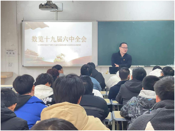 张理剑从国际国内形势、中国近几十年的变化及中国在世界舞台地位的变化谈起,带领大家从审议通过的2个决议、总结重大成就和历史经验的3个“需要”、马克思主义的3次飞跃、百年历程创造的4个伟大成就、党的百年奋斗的5大历史意义、党的百年奋斗的10大历史经验、党的十八大以来13方面的重要成就、全党4个必须、党中央的1个号召等九个方面认真学习了中国共产党第十九届中央委员会第六次全体会议精神,阐释了十九届六中全会的重大历史意义。在讲述过程中同学们听得认真专注,张理剑通过丰富的案例和深入浅出的分析,让同学们更加坚定理想信念,牢记初心使命,发扬建党精神,成为实现中华民族伟大复兴的先锋力量。
