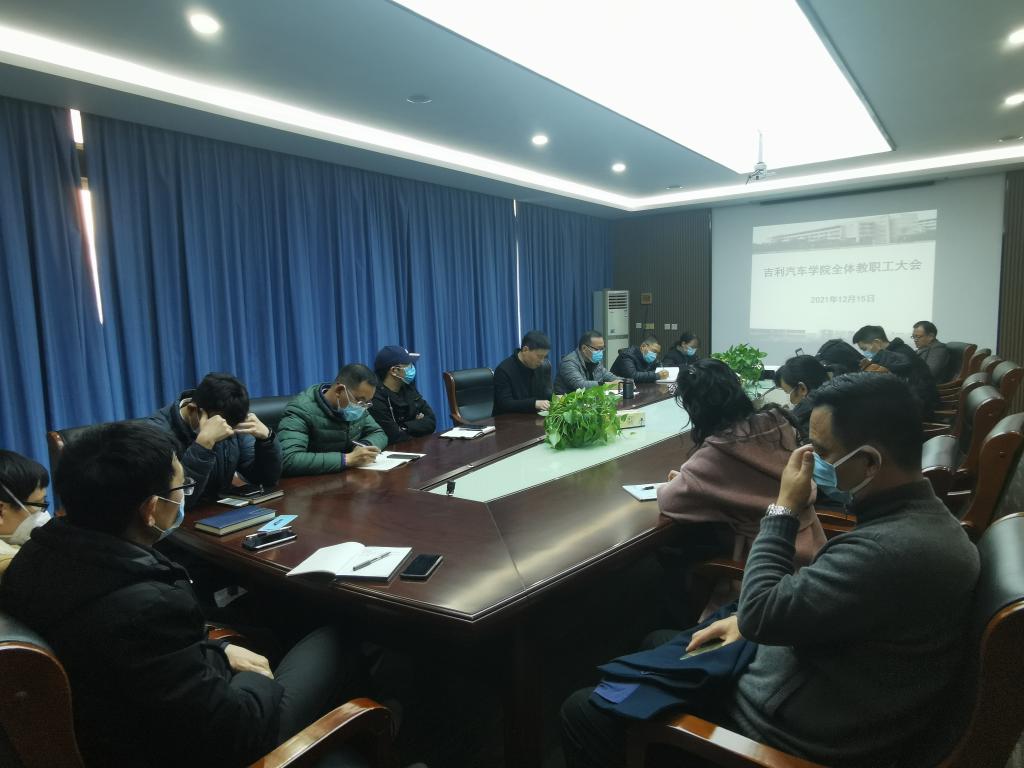会上,邵立东从三个方面做了工作部署。首先,邵立东结合本学期分院组织开展的教学公开课、督导听课、教师教学自诊、员工评教、教材检查和教学常态督查等工作完成情况,向全体教师反馈了教学环节存在的问题,要求全体任课教师务必坚守好自己的课堂阵地,以更加规范和更高质量上好每一堂课,认真指导员工完成好企业顶岗实习。其次,邵立东根据学校当前疫情防控要求,分别对大一、大二员工日常教学安排和期末考试做了整体部署,针对本周末英语等级考试和大三员工顶岗实习工作再次强调了疫情防控的有关要求。最后,邵立东要求各项目负责人务必以项目申报书上明确的项目建设绩效目标有计划分步骤高质量完成各个项目,努力获得标志性成果。张理剑传达了学校最新疫情防控工作的有关要求和员工管理工作注意事项。
