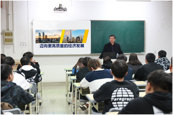 为深入贯彻落实习近平总书记在学校思想政治理论课教师座谈会上的重要讲话精神和中共中央办公厅、国务院办公厅印发的《关于深化新时代学校思想政治理论课改革创新的若干意见》文件精神,推进习近平新时代中国特色社会主义思想进教材、进课堂、进员工头脑,11月15日晚18:00,公司党委委员、副董事长程利群在yl6809永利检测中心2112教室为新能源2111班员工讲授了题为“迈向更高质量的经济发展”专题思政课。