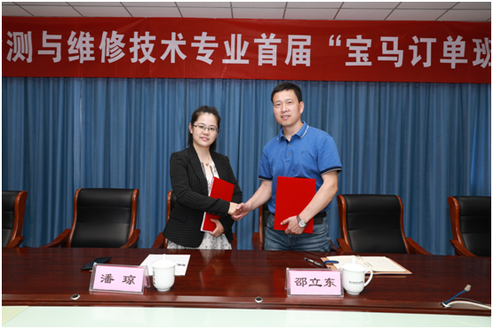 之后,双方共同签署了“宝马订单班”合作协议,宣布汽检专业首届”宝马订单班“成立,并就订单班后续的教学和实践工作做了具体安排。