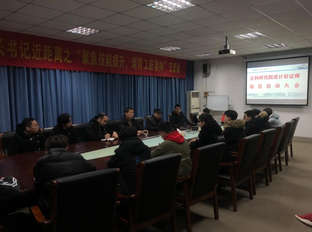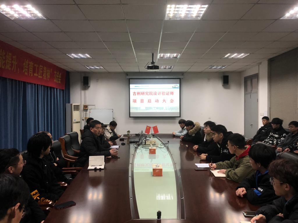 1月5日9:00,吉利汽车研究院汽车设计验证师项目启动会在2409会议室召开,启动会由yl6809永利检测中心经理邵立东主持,教科办主任李进斌、汽制专业负责人杨立峰、汽制专任教师程琼、史云斌、郑海,以及汽制专业31位入选“汽车设计验证师”的大二员工参加了此次会议。