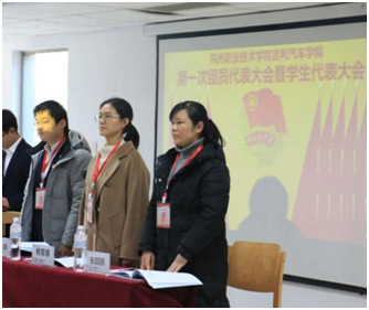校团委副书记楼黎瑾为大会致辞。她充分肯定了原汽车学院团总支在分公司党总支和校团委的正确领导下,在团的思想教育、校园文化建设以及团学组织自身建设的方面取得了显著的成绩。希望分院团总支今后继续完成好各项目标和任务,让青年员工成为学院发展的见证者、受益者、参与者、建设者。受吉利汽车公司党总支副书记张理剑委托,学工办主任张园园为大会致辞,勉励同学们勤奋学习、开拓创新、勇于实践、奋发成才,进一步比拼专业技能、繁荣校园文化,不断塑造积极向上的院风、学风。