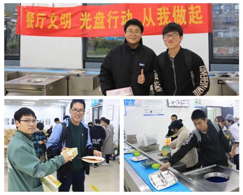 用餐时段,员工干部们集合于员工食堂,在食堂西门旁边的座位附近,观察用餐同学倒掉剩菜剩饭的情况,对实现“光盘”的同学们送上精心准备的小礼品,对倒掉剩菜相对较多的同学则送递写有“饮水应思源,粮食当节俭”、“爱惜粮食,养成良好习惯”等以餐厅文明、珍惜粮食为主题句子的纸条,并向他们宣传光盘行动、节约粮食的重要意义。随着活动的开展,大家送出的“光盘”小礼品越来越多,递上的纸条则越来越少。