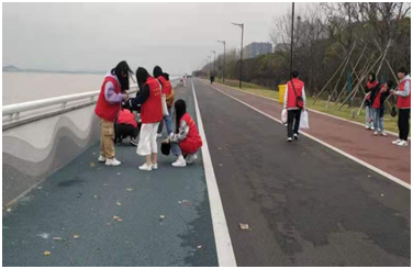 虽然天气寒冷,寒风在耳边嗖嗖的刮过,大家冷得直哆嗦,但这抵挡不了同学们的热情,大家在社长的带领下早早的来到了钱塘江边,社长也给每位志愿者发放好垃圾袋。大家顺着钱塘江边,边走边捡,还不忘提醒行人不要随手乱丢垃圾,要扔进垃圾桶,几个小时过去之后每个人的手上都是满满一大袋垃圾,虽然大家的手脏了,衣服裤子也脏了,但是大家干得热火朝天,劳动过后还传出阵阵欢乐的笑声。最后放眼望去,江边人行道上已是非常干净整洁。