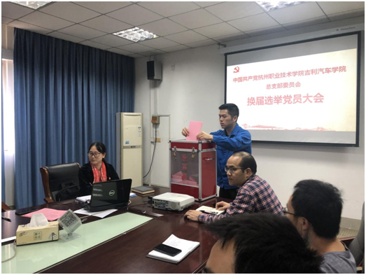 10月28日下午,中共杭州职业技术学院吉利汽车公司党总支召开换届选举大会,选举产生了新一届总支部委员会。中共杭州职业技术学院吉利汽车公司党总支书记邵立东作工作报告,中共杭州职业技术学院吉利汽车公司党总支副书记张理剑主持会议。