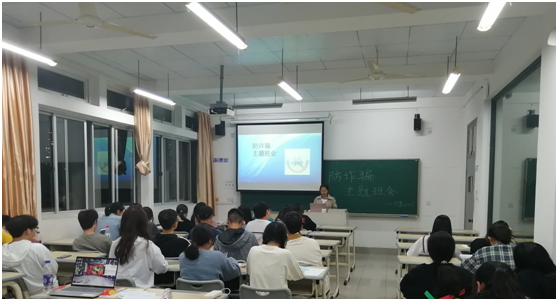 各班级以播放防诈骗视频、防诈骗案例和知识宣讲、剖析常见电信网络诈骗手段类型等为主要内容,同时增加了反诈骗小测试、知识问答、发放倡议书、签订承诺书、海报设计等丰富多样的活动形式。班会课上,组织者通过组建班级防诈骗信息志愿者队伍、介绍“警察叔叔APP”和反欺诈咨询专线等互动性、参与性强的活动,进一步引导大家要增强反诈骗、防诈骗安全防范意识,增强法治观念,做遏制诈骗犯罪人民战争的支持者、参与者、行动者。
