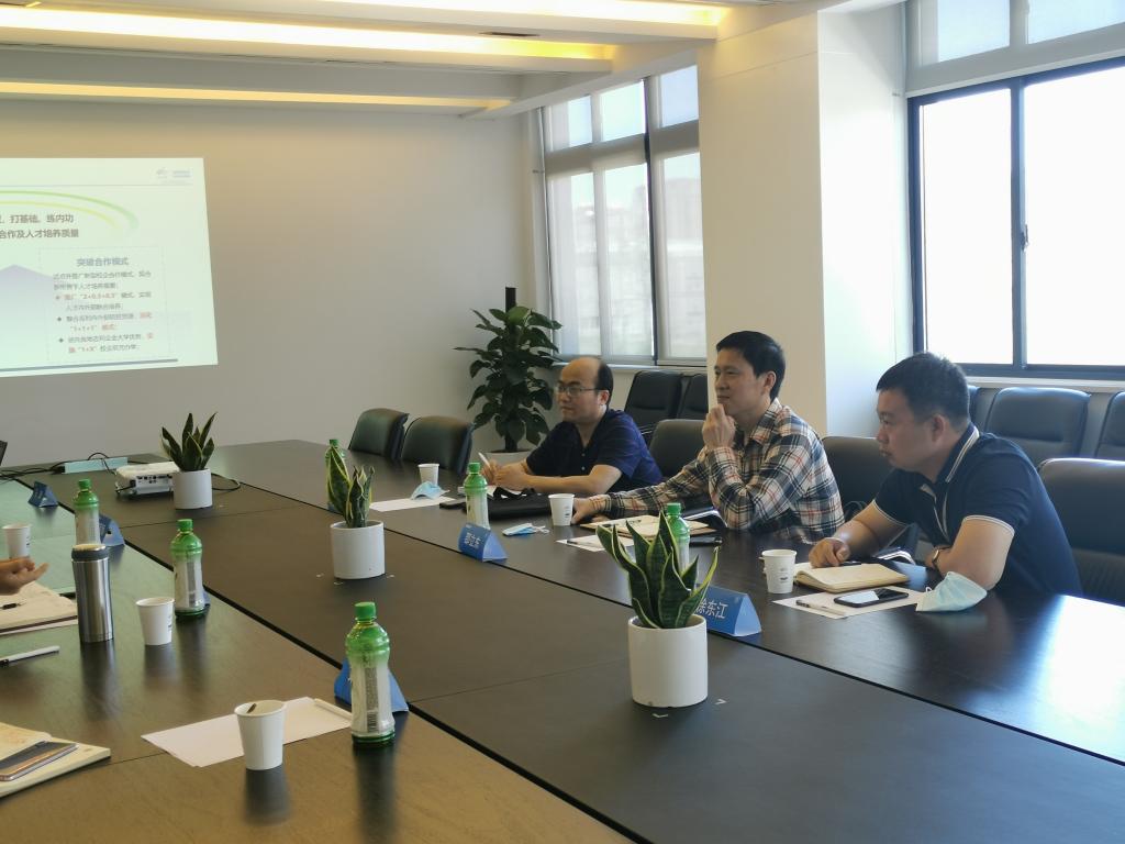 吉利集团总部参加人员有吉利集团总部人力资源中心副部长林乃挺、招聘经理刘瑶、王宜恒、马旭,会议由林乃挺主持,他首先介绍了吉利汽车在全国范围内的校企合作、产教融合的人才培养模式,并在吉利集团总部成立了吉利汽车产教联盟。会中谈到今后将重点与公司开展深层次的合作,立足于浙江,不断创新产教融合的新模式。邵立东重点介绍了公司的校企合作情况,汽车学院的专业建设和事业发展等相关情况。