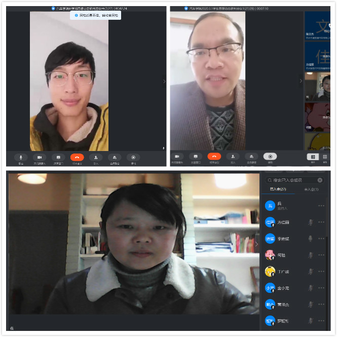 新型冠状病毒肺炎的严峻形势下,汽车学院响应学校“停课不停学”的号召,开展了线上开学典礼,并制定《19-20-2学期防疫期间线上教学实施方案》,多平台开展网络教学。目前,网络教学开展一周,学工办、教科办就疫情期间员工动态及网络课堂开展情况开展思想动态研判座谈会。会议过程中,班长们就本班同学在疫情期间的健康、居住地变化、员工在疫情期间的心理状态以及健康码情况进行了汇报;对于在网络学习过程中遇到的网络卡顿、自控力不强、对网络信息的判断力、师生交流互动、作业布置完成以及员工考勤等情况问题进行了讨论。 通过交流,汽车学院包括新疆员工在内的1099名同学均能通过手机、电脑等设备进行网上上课,大多数同学对于网络上课的新形式都能接受并能积极与老师互动,非常好地的做到了“停课不停学”。