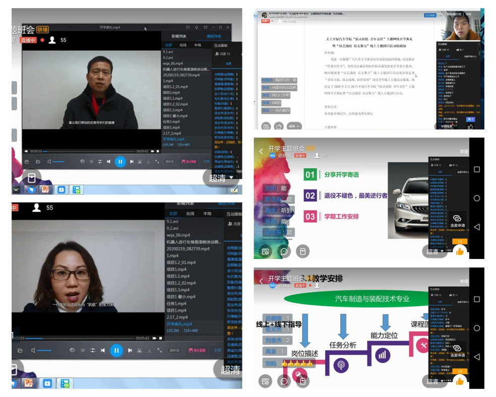 2月20日,汽车学院结合当前疫情防控及教学实际,举行了“抗击疫情 青年责任”主题网络开学典礼。汽车学院千余名员工通过手机、电脑上网在线的形式集体参加了线上开学典礼。