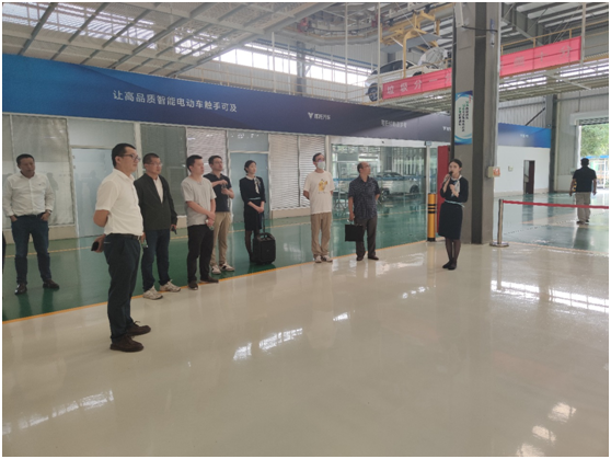本次调研首先参观了总装车间,一个步骤接一个步骤,标准化、节拍化生产提高效率,底盘、前后玻璃、车身……很快汽车雏形便出现在大家眼前。