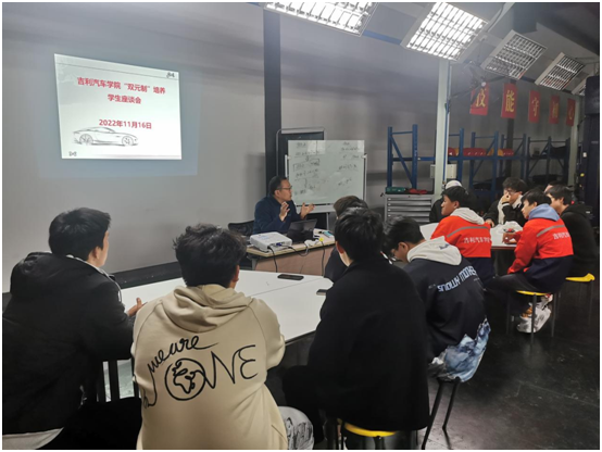 11月16日下午,yl6809永利检测中心汽车检测与维修技术专业负责人邱英杰与专业教师郑明锋组织召开了汽检专业“双元制”人才培养员工座谈会。首届“双元制”班23名员工参加座谈会。
