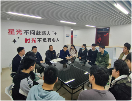 师生还就近段时间的思想动态、心理状态、公寓管理、学习生活等问题进行了交流。同学们积极发言,讲述了自己对党的二十大重要意义的认识、学习二十大的感悟、未来发展方向以及自身工作经历与困惑等。张理剑认真听取了员工的发言,逐一提出指导建议,教导大家从平时学习工作中自觉发挥先锋模范作用,全心全意为同学们服务。教师一行还走访了员工寝室。