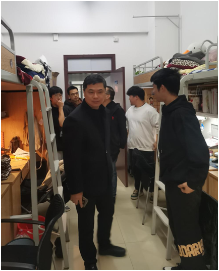 在员工公寓,程利群在访客本上登记姓名、仔细走访寝室。他认真了解员工对寝室设施日常使用情况, 叮嘱员工注意天气变化,做好防寒保暖,注意用电安全,做好自我防护,提高安全防范意识。希望同学们培养良好的学习生活习惯,继续营造良好的寝室学习生活氛围。