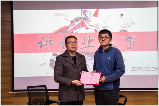 沈继伟同学在校学习期间就创办了自己的汽车服务公司,至今已有十个年头,除了扎根汽车行业,还涉足了互联网、3D打印等领域,目前经营3家公司;沈康、李大千同学是通过在汽车4S店多年工作的积累,掌握了较好的汽车修理技术后,创办了属于自己的汽车修理公司,实现了当初的小梦想,凭着好技术、高质量的口碑,公司规模正在逐渐扩大,发展势头良好。与会的创业学子分享了他们的创业历程、收获以及在创业过程中遇到的问题和困难,并以“坚定毅力、兴趣爱好、专业能力、心理素质”等关键词详解了创业者应具备的核心素质,同时,也对现场同学们提出的有关就业选择、行业发展等诸多问题,一一做了解答,同学们感到受益匪浅。最后,邱英杰向三位创业学子颁发了创业导师聘书。