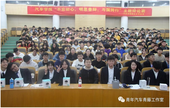 11月14日,由汽车学院团总支员工会主办的“不忘初心明思善辩”辩论赛决赛在行政楼报告厅精彩开赛。汽车学院团总支教师、团总支员工会成员及19级全体同学一并观赛,现场为辩手们加油助威。