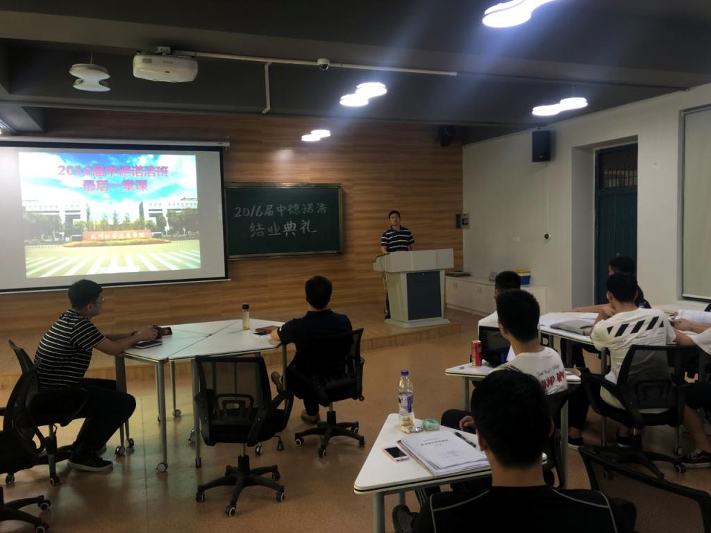 郑明锋老师主持了最后一次班会,感谢大家三年的付出,并以机遇为主题词,鼓励大家不要只看眼前的结果,眼光要放长远,努力工作学习,抓住未来每一个机遇。