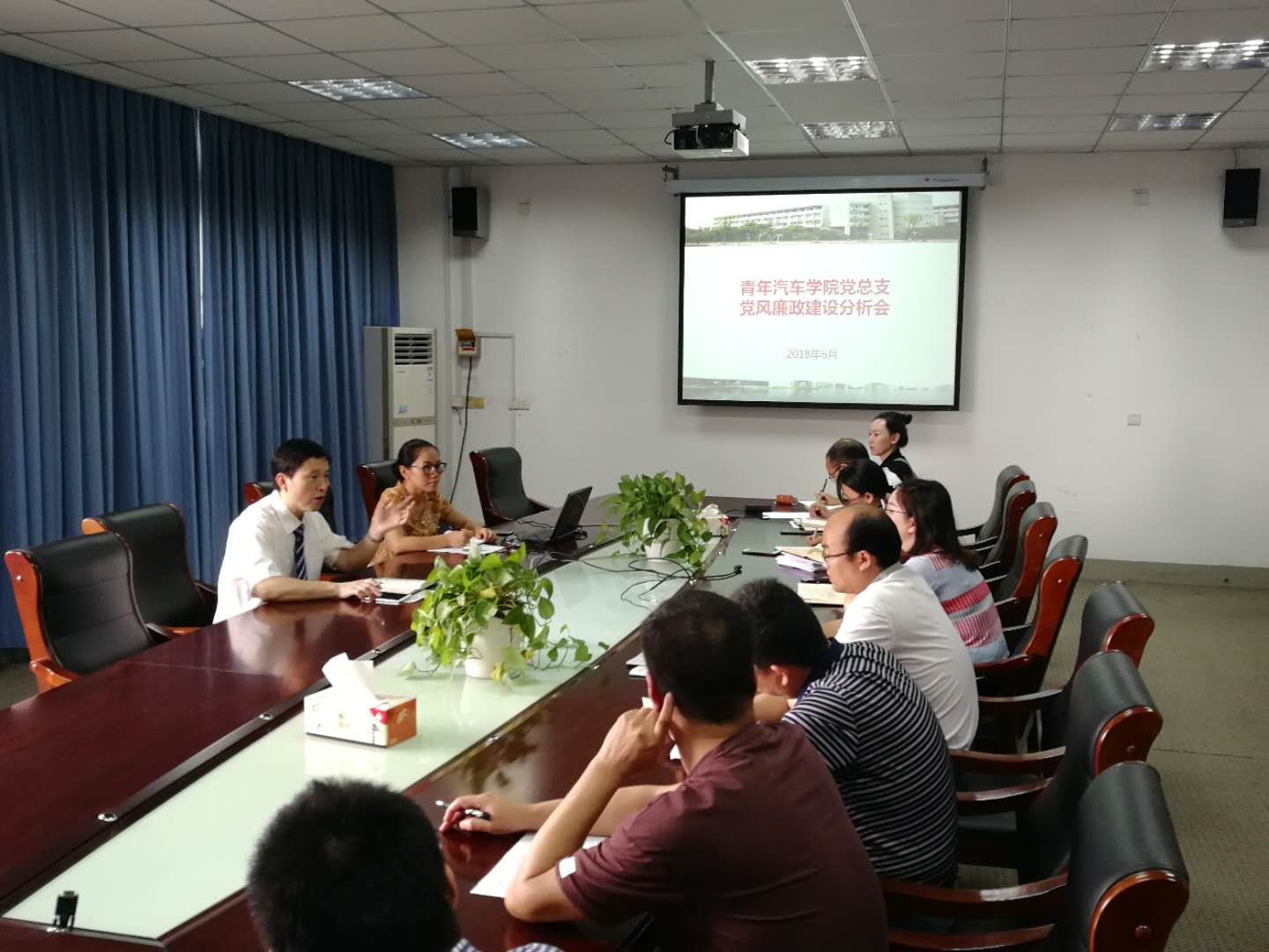 6月21日下午,青年汽车学院在2409会议室召开了2017年上半年党风廉政建设分析会,经理邵立东、党总支副书记龙艳、党总支委员、部门负责人、专业负责人以及有关项目负责人参加了会议。会议由龙艳主持。