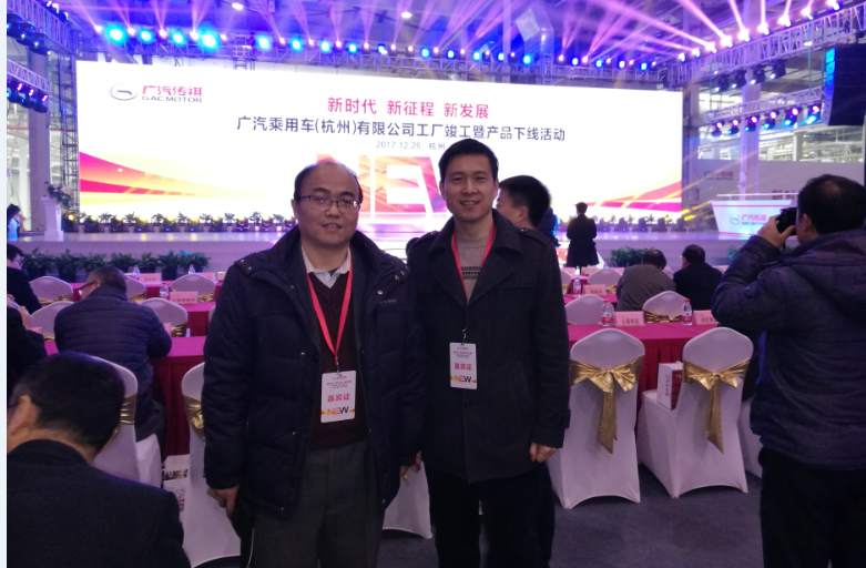 2017年12月26日上午11:00,青年汽车学院经理邵立东、汽车制造与装配技术专业负责人杨立峰应邀参加广汽乘用车(杭州)有限公司工厂竣工暨产品下线仪式。杭州市长徐立毅、杭州市常务副市长戴建平置辞祝贺,大江东开发区相关领导共同推动GA3 首台车下线总推杆。 此次下线代表广汽乘用车实现20万辆生产能力的第一步,预计2018年实现产值100亿元,2019年达产后能够实现200亿元。