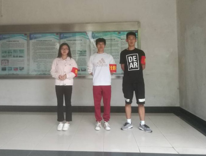 每天早晨7:50分前,这些同学们早早地站在青年楼东西两侧,开始二十分钟的引导工作,保证新同学们遵守纪律,树立良好的自律意识,规范着装,不带早餐进入教室。向着路过的老师,同学们道一声早安,为新生们以身作则,做文明有礼的青年人。