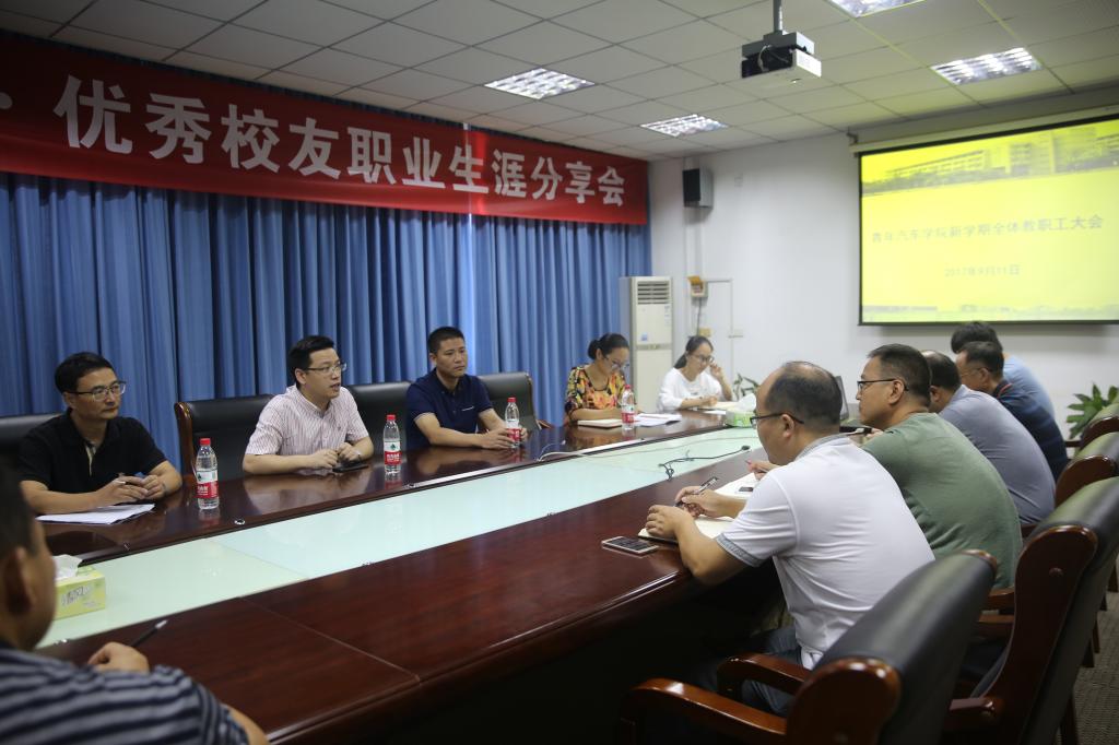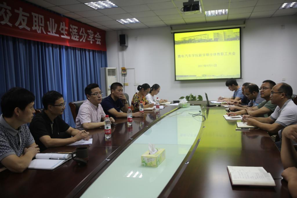 9月11日上午,青年汽车学院在2409会议室召开新学期全体教职工会议。董事长贾文胜、副董事长陈加明及公司党政办主任楼晓春到会指导,经理邵立东、副书记龙艳及全院教职工参加会议,会议由邵立东主持。