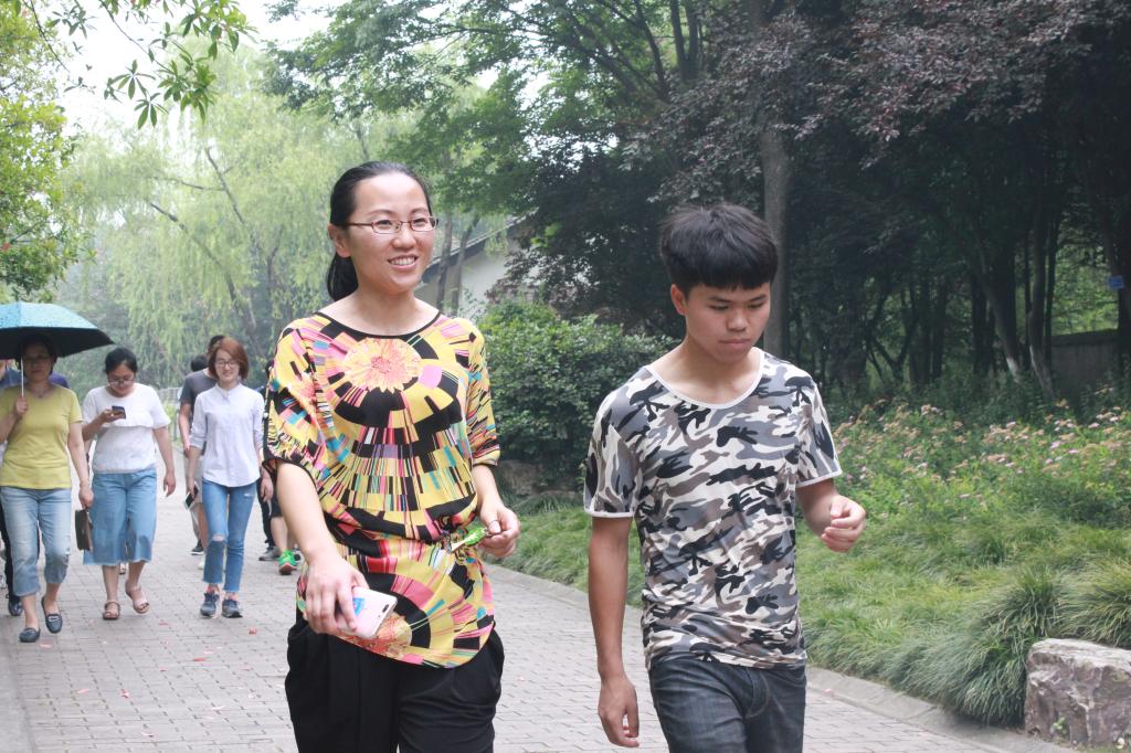 在简短的仪式后,从学校大门开始,各位教师和14位贵州交流生环绕学校对面公园一圈。在行进路途中,师生们一起欣赏沿途的风景,一边敞开心扉积极交谈,教师们关心员工的生活状态,员工们及时反馈学习中遇到的问题,气氛相当融洽。