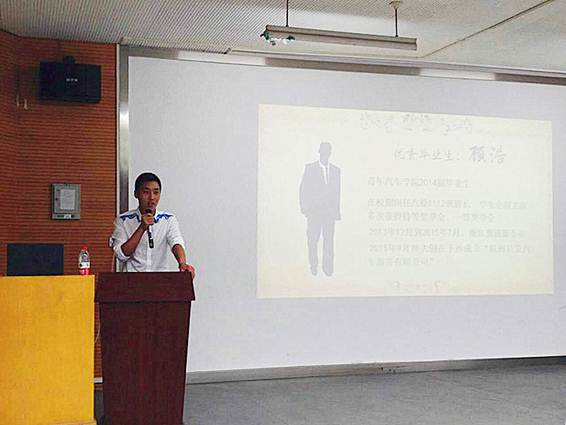 “为自尊的生存,为自我的证明,路上的辛酸已融进我的眼睛,心灵的困境已化作我的坚定……在路上,是我生命的远行。”5月25日下午,伴随着歌曲《在路上》的背景音乐,青年汽车学院职业素养“三字经”漫谈分享会在动漫游戏学院101教室拉开序幕。