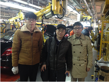 为确保员工顶岗实习安全,12月6日青年汽车学院汽车制造与装配专业老师一行探访慰问了在吉利汽车位于宁波北仑制造基地定岗实习员工。公司员工的到来,正赶上吉利汽车年底产量翻倍的时间,其中,李淼同学在第一天上岗,就完成320车门的装配,预计月末工资加奖金可以达到3000元左右。吉利人事部经理对我们的毕业生的能力大加赞赏:“他们动手能力强,到岗后角色转变快,迅速跟上汽车的生产节拍。”