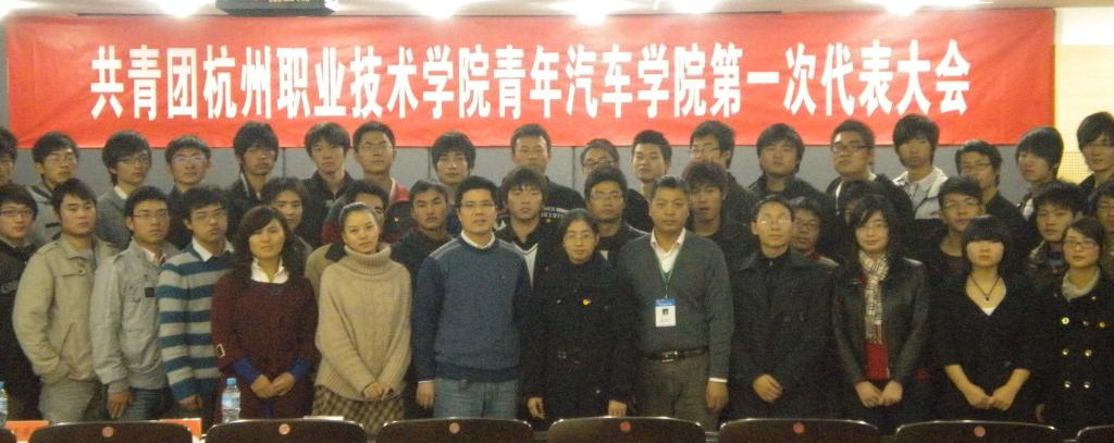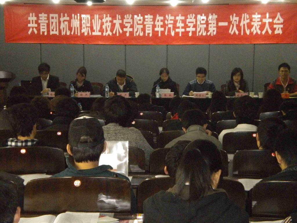 2009年11月25日下午14.30分,青年汽车学院终于迎来了期待已久的第一次团员代表大会,这次会议在学院行政楼第三会议室隆重召开。校团委副书记张弛、青年汽车学院副经理周佳良、学工办主任胡严、金都管理学院团总支书记张杰、化工系团总支书记俞坚、达利女装学院团总支负责人韩丹、院员工会主席张伟以及杨云老师等列席代表和各代表团共100多人出席了本次大会。庄严的气氛让全体与会代表相信,广大团员青年都将会团结奋进,青年汽车学院也将会不断开拓,务实进取。会议在一首耳熟能详的《共青团团歌》中正式开始。首先是校团委副书记张弛老师在大会上作了重要指导,并殷切希望公司青年团总支要加强引导团员青年,加快团建,善用专业的力量,增强服务意识,加强作风,提高自身素质,今天是青年的新起点,新形象,新思路,新发展。青年汽车学院副经理周佳良在百忙之中前来会场,并作了重要讲话。他首先向在场代表介绍了青年汽车学院的前期工作,充分肯定了青年汽车学院团工作的成绩,团工作要做到水到渠成,团员青年学习和发展都要上一个新台阶。汽车作为未来杭州经济社会发展支柱的背景下,强调只要努力,积极进取,青年的前途会更加光明。