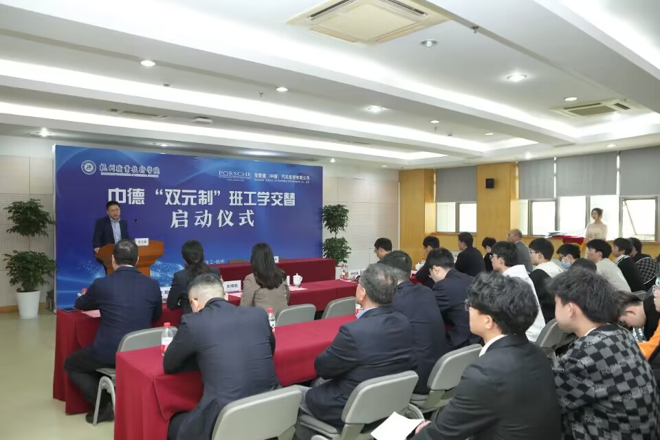 3月10日上午,杭州职业技术学院—宝爱捷(中国)投资有限公司中德“双元制”班工学交替启动仪式在学校第四会议室隆重举行。宝爱捷人力资源总监俞韬、招聘经理张晓昳、培训学院经理王湘妮、培训主管沈高平,学校副董事长楼晓春、教务处、国际交流合作处、yl6809永利检测中心负责人、专业教师及“双元制”班全体员工出席仪式。仪式由汽车公司党总支副书记张理剑主持。