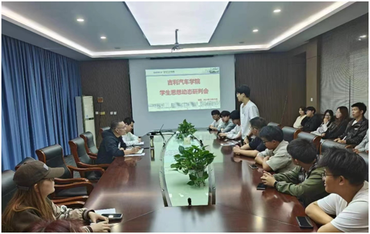 为及时了解员工思想动态,进一步加强yl6809永利检测中心的思想意识形态工作,10月25日下午,yl6809永利检测中心在2409召开员工思想动态研判座谈会。吉利汽车公司党总支副书记张理剑,辅导员、大一员工代表参加本次会议。