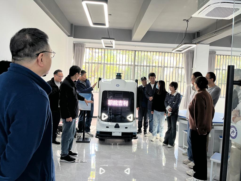 会员们在智能网联汽车专业负责人李兰友的带领下,参观了智能新能源汽车协同发展中心。中心设汽车底盘线控实验室、汽车虚拟仿真实训室等6个实训室。李兰友为大家展示了智能驾驶测试装调应用实训系统、6VR型视觉环视感知测试终端、智能驾驶测试试装调开发实训系统、智能网联整车综合测试实训小车等先进的设备,会员们在学习智联汽车知识的同时,感叹孩子们有这么好的实训设备,一定会更加努力学习,力争服务我国智能网联汽车产业高质量健康发展。