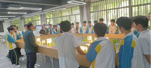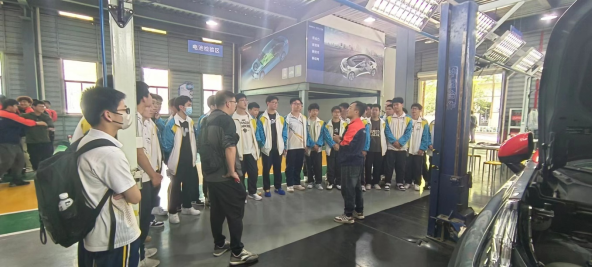 首先,同学们在智能网联汽车协同中心、新能源汽车实训基地以及杭州市公共实训基地进行实践教育,近距离感受最新的汽车技术和发展前景,明确了专业学习方向。随后在2216教室进行座谈交流,张余对参与此次活动的47位同学的到来表示热烈欢迎,并就杭州职业技术学院、吉利汽车学院以及汽车检测与维修技术专业分别做了详细介绍,鼓励同学们立足汽车技术专业,不断学习技能,刻苦训练技能。