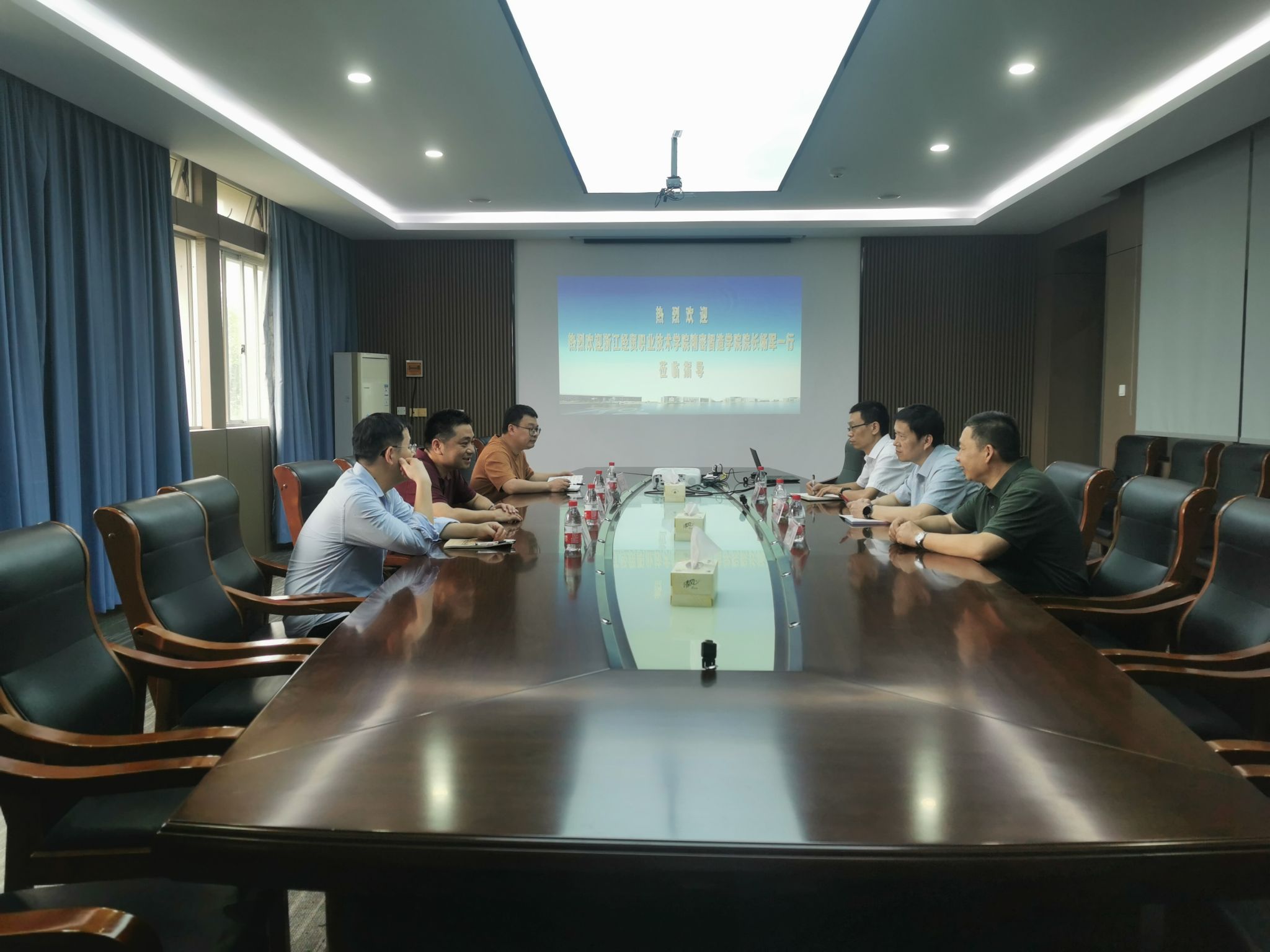 9月27日,浙江经贸职业技术学院精密智造学院经理杨军一行来访公司。吉利汽车学院经理邵立东、实训办主任沈国清、智能网络汽车技术专业负责人李兰友参与接待。