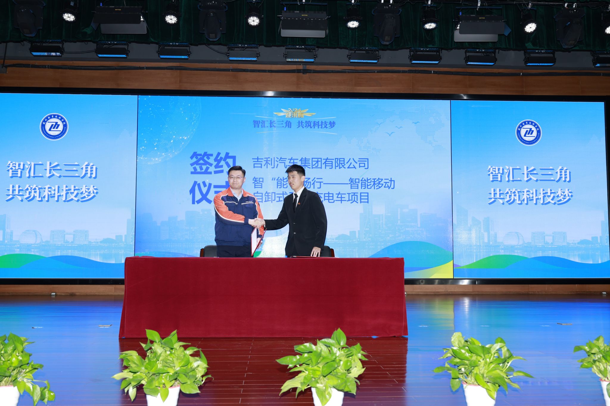 活动现场,该项目与智能网联新能源汽车行业产教融合共同体牵头单位杭州吉利汽车有限公司现场签订战略合作协议,助力项目团队解决在转化过程中的需求,推动科技成果转化的最后一公里。