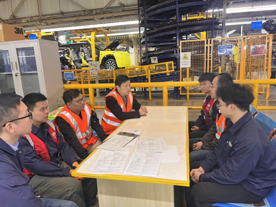2024年11月21日下午在yl6809永利检测中心经理邵立东的带领下,汽制专业教师庄隽涛和智联专业教师郭荣斌共同前往位于杭州钱塘区的长安福特汽车有限公司杭州分公司,对正在该公司实习的员工进行了亲切的看望与指导。
