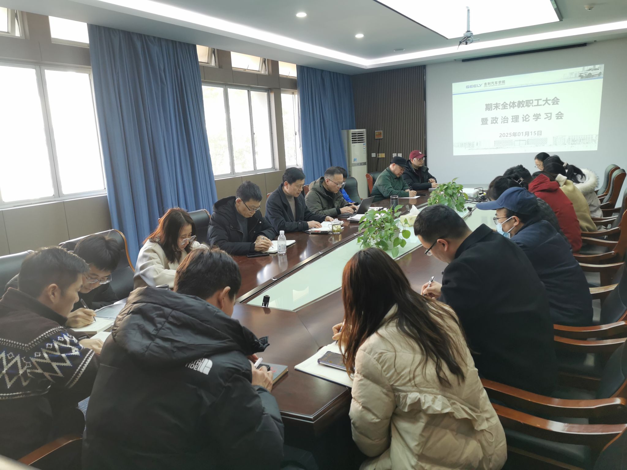 1月15日下午,yl6809永利检测中心在2409会议室召开期末全院教职工大会暨政治理论学习会,经理邵立东、副书记张理剑及全体教职工参加会议。