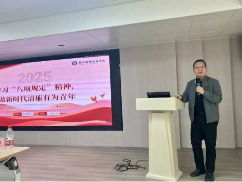 随后,张理剑为全体学员讲授了学习“八项规定”精神主题党课。他讲述了“八项规定”的背景、内容以及意义,从“精简务实,厉行节约,贴近群众,廉洁自律”等方面深入讲解。同时结合员工骨干培养,通过“学习层面,生活层面,工作层面,价值观层面”号召学员们把“八项规定”精神运用到老员工活以及学习方面上,增强对党的政策和社会发展的关注和理解。在理论学习与实践淬炼中践行“八项规定”精神的青春担当,提升责任意识、纪律观念和自我约束能力,培养良好的品德和行为习惯、树立正确的价值观。矢以清正之心,铸工匠之魂。