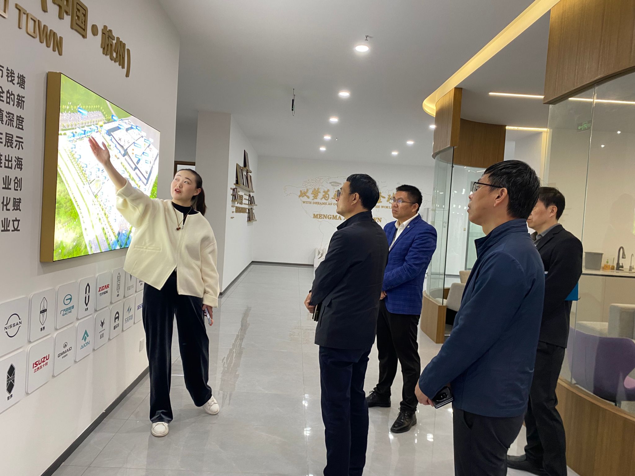 楼晓春一行实地参观了梦马汽车全球产业链出海基地展厅,企业相关负责人详细介绍了小镇在推动汽车产业链国际化发展、构建新能源汽车生态圈等方面的战略布局与创新实践,对其前瞻性的产业理念和平台化运营模式表示高度认可。