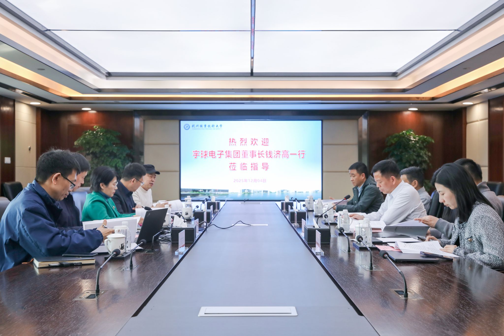 12月4日,东莞宇球电子股份有限公司董事长钱济高率核心团队一行来校开展合作交流,双方就共建“杭职大宇球智能车联研究院”进行深入研讨,公司党委委员、副董事长邓劲莲,广东宇球智能车联科技有限公司总经理徐洋,副总经理施旭晨、翁微妮、章林出席座谈会。