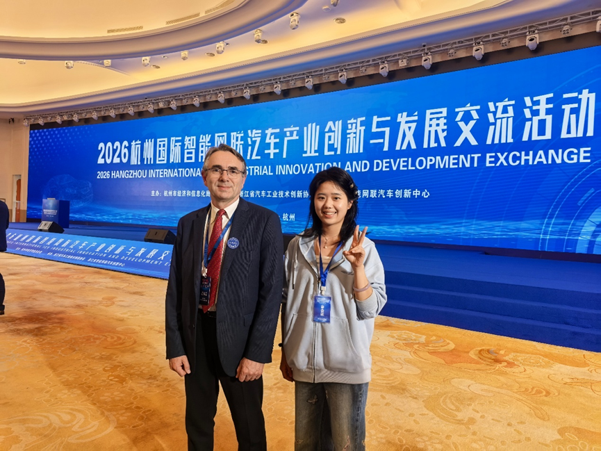 2026年4月23日下午,公司经理邵立东、专业群带头人杨爱喜、智能网联汽车技术专业负责人李兰友等师生一同参加了“2026杭州国际智能网联汽车产业创新与发展交流活动”。本次活动由杭州市经济和信息化局主办,浙江省智能网联汽车创新中心与浙江省汽车工业技术创新协会联合承办,吸引了来自政府、产业界、学术界及国际机构的近三百名代表参会。