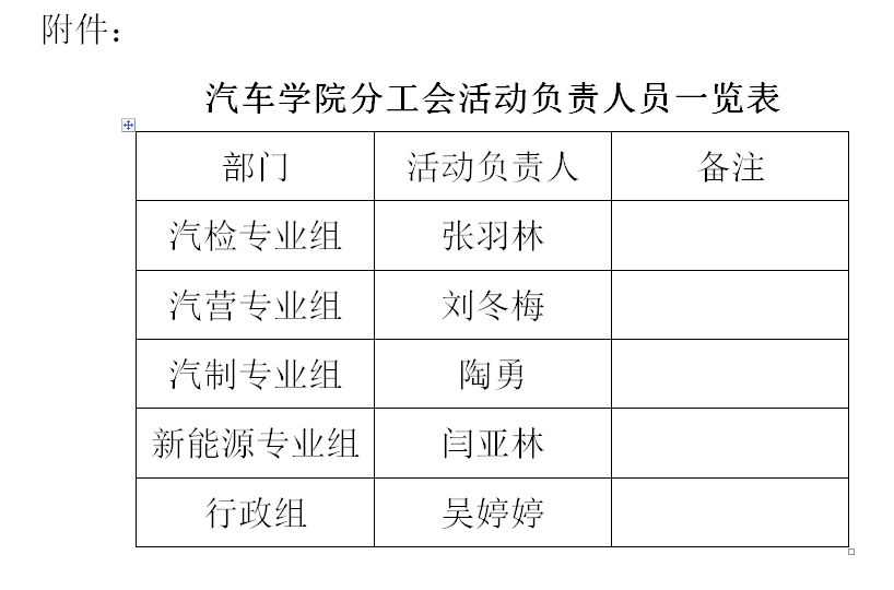 附件:汽车学院分工会活动负责人员一览表