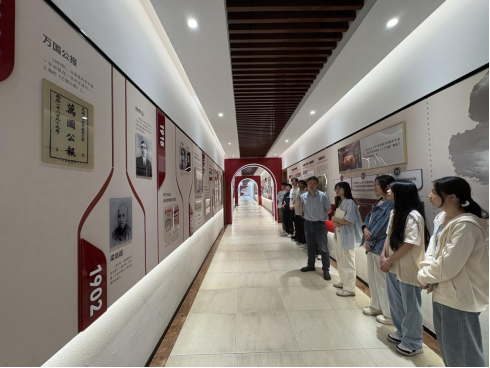 仪式后,邵立东同志带领入党积极分子走进马克思主义学院“必由之路”思政长廊开展现场教学。在描绘着党的百年征程的长廊内,邵立东同志以时间为轴线,从南湖红船的开天辟地讲到新时代的伟大变革,重点讲述革命先辈们纯粹的入党初心与无私奉献精神。沉浸式的学习体验,让党的百年奋斗历程化作可触可感的精神坐标。